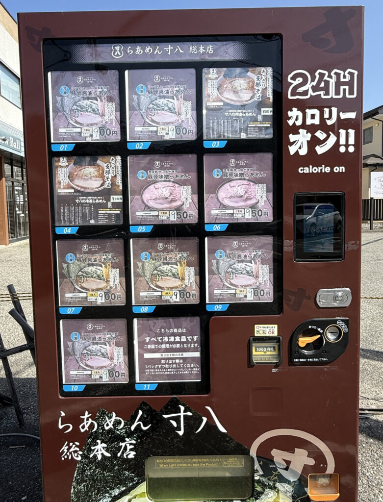 寸八の駐車場には自動販売機もあるので、お時間のない方はこちらを利用してもいいかもしれませんね。